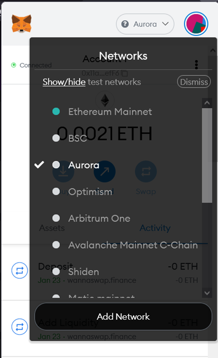 Add Astar Network to your MetaMask Wallet Open MetaMask, go to the available networks, and click the below button!